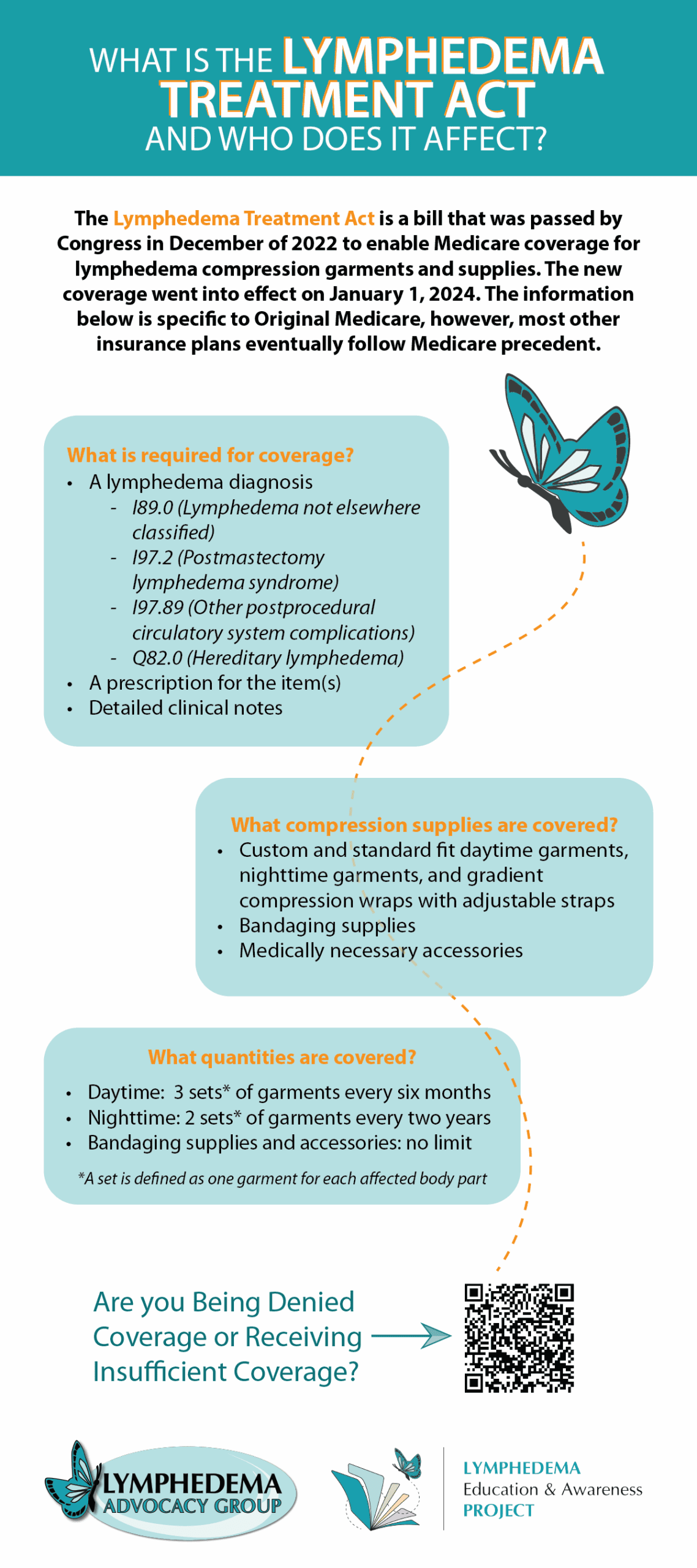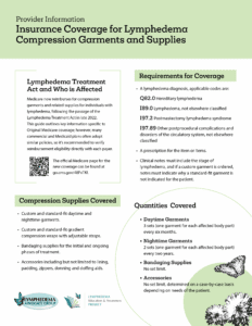 An easy-to-print one-pager about the compression coverage that started on January 1, 2024, thanks to passage of the Lymphedema Treatment Act. Click here or on the image to view or download this document.